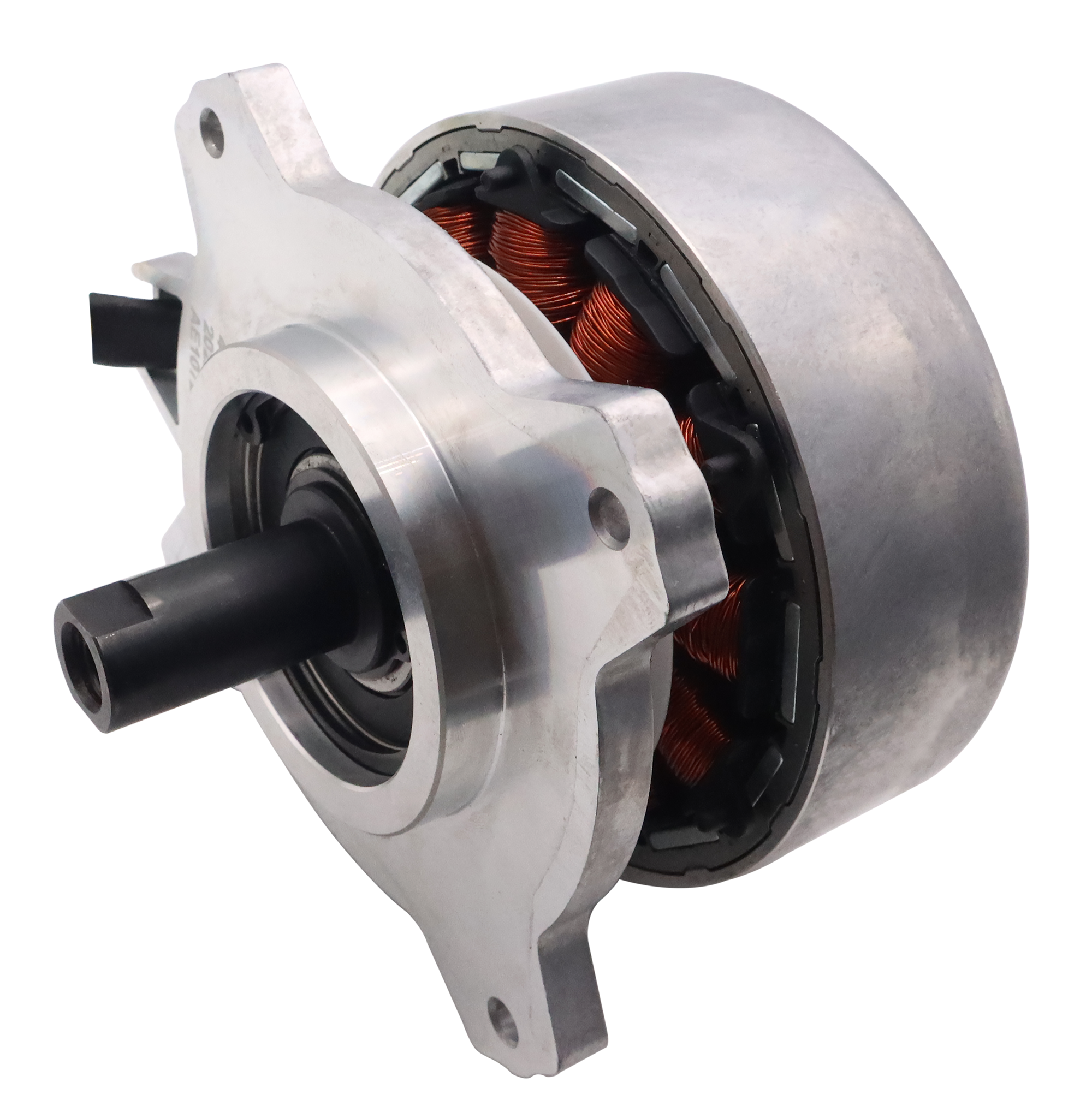 ①采用多极多槽外转子结构,直接驱动,大扭矩,低噪音,过温保护; ②采用稀土磁钢,体积小,功率密度高,效率高; ③铝合金安装板,结构强度高,坚固耐用,可靠性高